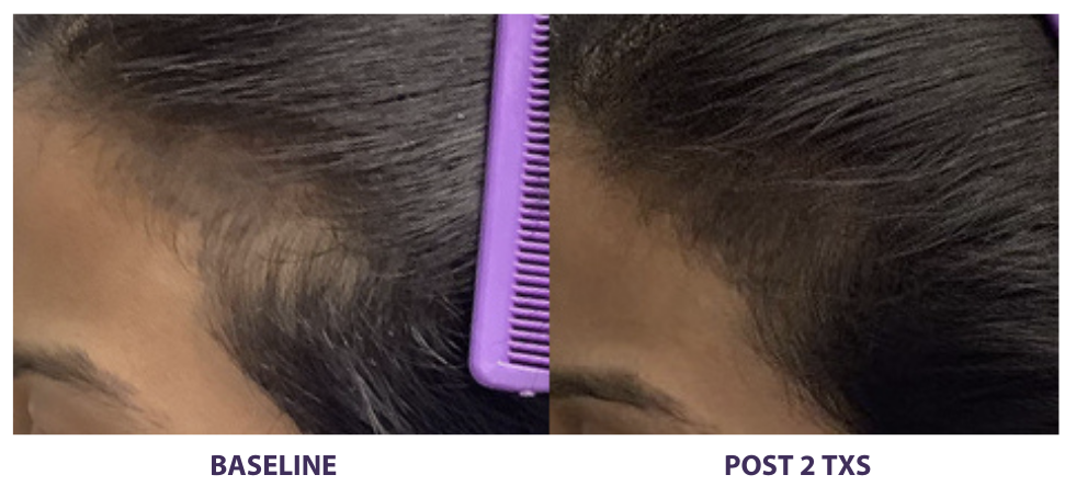 Alma TED is a needle-free, pain-free hair restoration treatment that uses ultrasound waves and air pressure to create microchannels in the scalp. This allows a topical serum containing growth factors and peptides to penetrate deep into the skin, stimulating hair follicles and promoting thicker, healthier hair without needles, incisions, or downtime.